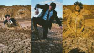 It's been far too long since we've seen our Dressed for Success Down Under friend get himself all muddied up. He's in a quarry this time, with light brown sandy soil that he can easily step through. As he trods deeper into the muck, we get to see him all dressed up in some beautiful liquid mud which bit by bit covers the entire suit. Soon he falls face first into the muck, at which time he gives up and runs the mud through his hair. Clothes come flying off until he's almost completely naked, at which time he can't but help finishing himself off in our favorite way. One of the best mud videos I've seen in awhile!